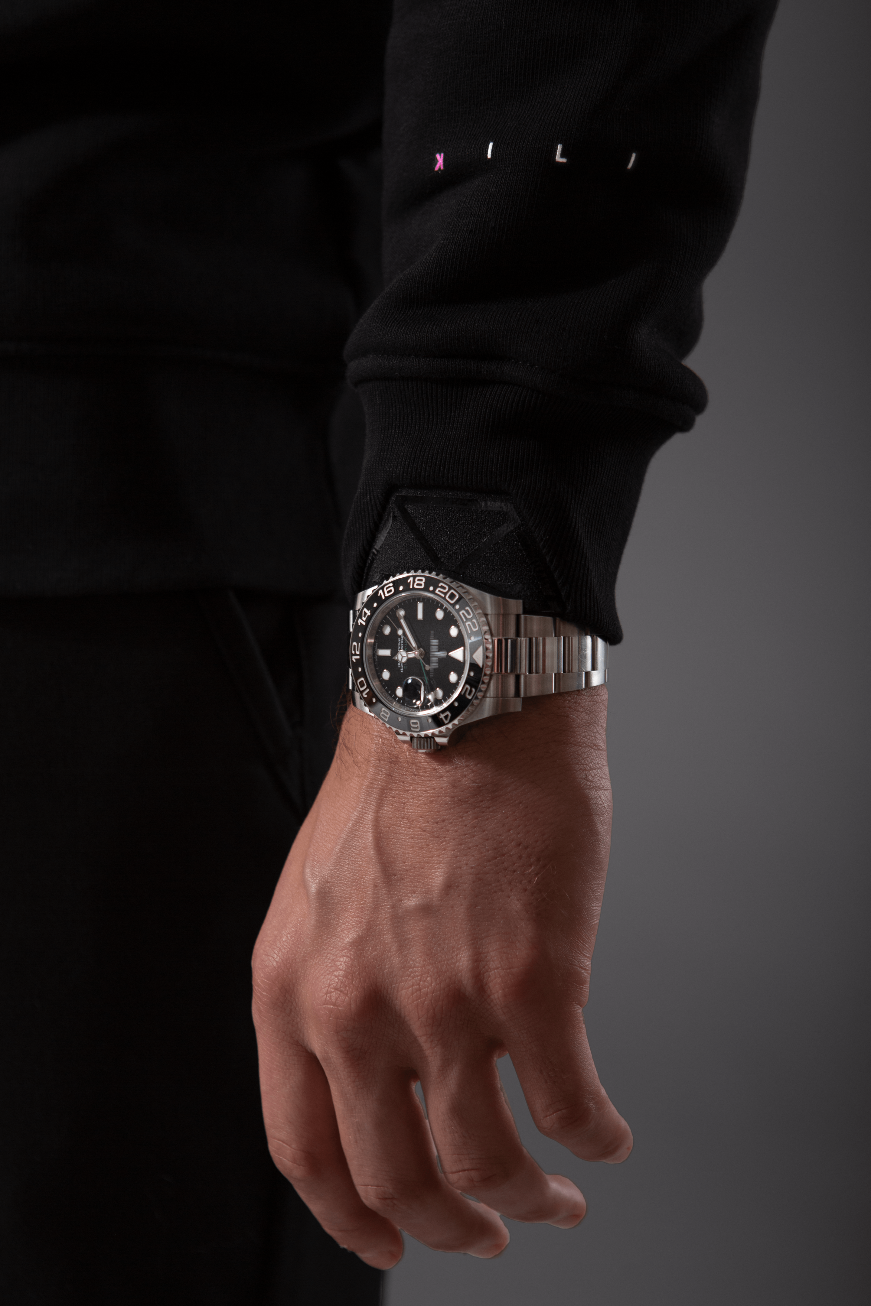 Die erste Edition des Sweaters ist verbunden mit der Entstehungsgeschichte von Kili Apparel. Ein schlichter, moderner Schnitt koaliert mit einer funktionalen Idee für Uhrenträger